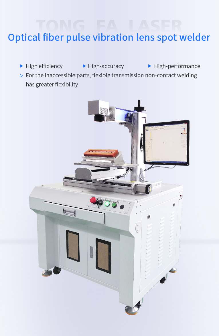 Vibrator scanning laser spot welding machine is the introduction of foreign technology, the key components with high quality imported parts production, welding machine, using the scanning lens of dynamic welding process, and adopt the movement of scanning lens moving or welding lens, make the lens in the scanning lens will laser beam quickly switch between solder joints, the greater the distance between the solder joint, the more the number of solder joints on the workpiece, the more obvious advantage. In the single point welding, because the empty-range positioning time is greatly reduced, the production efficiency is 4- -10 times higher than the laser spot welding of the ordinary XY workbench.
