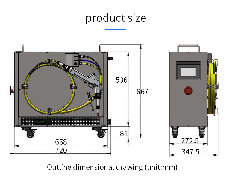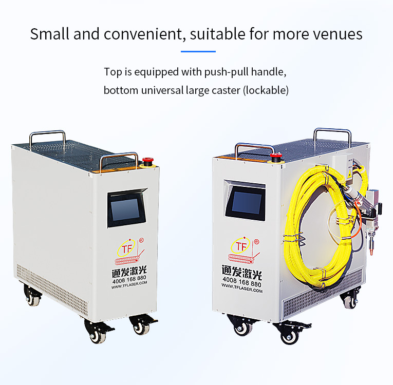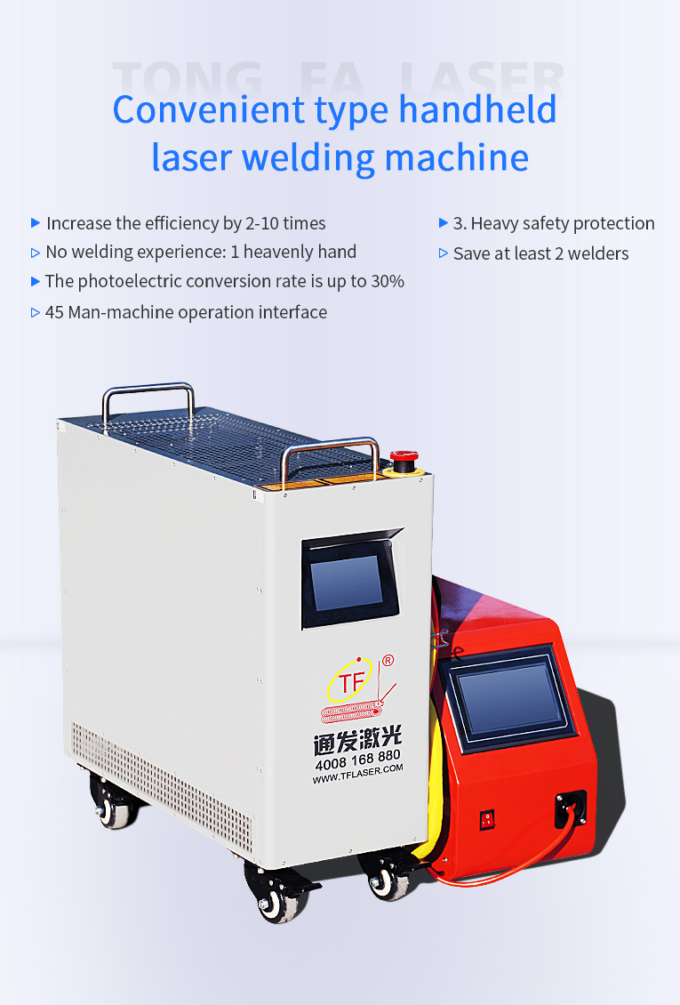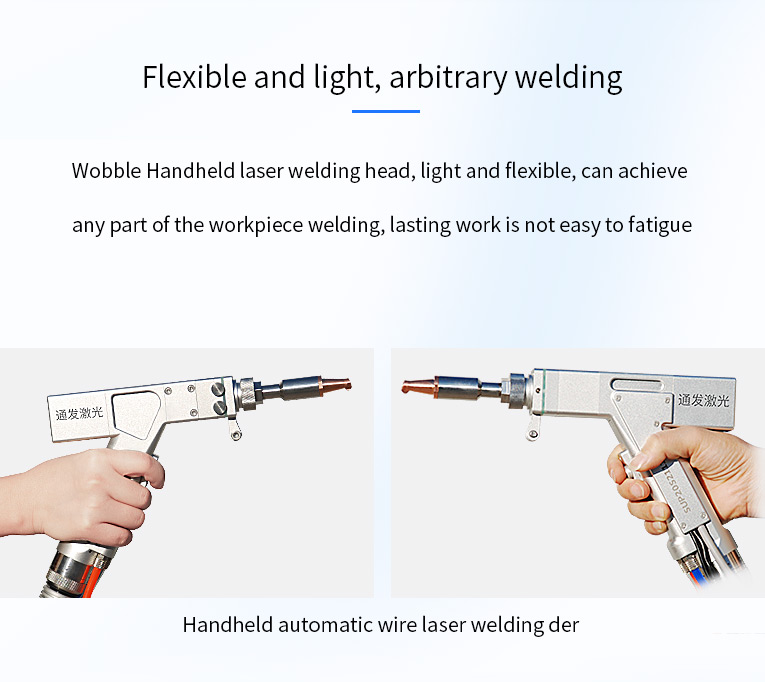 It covers a small area Flexible and convenient integrated design, laser, water tank, control part combined together, covers a small area, low requirements for the site, equipped with mobile pulley, can adjust the station at any time according to the site requirements, convenient and flexible. Hand-held welding head, transmission optical fiber can choose 10 meters, break the limitations of the bench, can reach a wider welding range, suitable for a variety of complex welds, can be any part of the workpiece, Angle laser welding processing. |