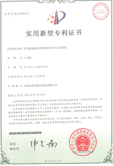 Patent of power supply pulse current overcurrent protection device and optical fiber laser laser welding machine fast time light separation device
