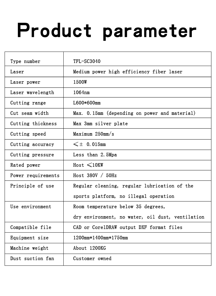 - TFL-SC3040 gold and silver jewelry laser silver cutting machine fine slit up to 0.05-0.1mm the use of appropriate auxiliary gas smooth slit no need for secondary polishing. Used in gold and silver jewelry small accessories auto parts mobile